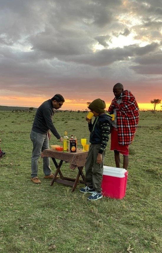 The day’s game drive ends in a sundowner, like no other you’ve ever experienced. Amidst the golden glow of the setting sun, in the midst of the Masai Mara, you sip your wine, bite into that cheese and pinch yourself “Is this really for true!” And all the while, some animal, somewhere, brays or lets out warning calls. “Beware” they say? We were awed that a vacation, away from luxury and room service, can even mean something as beautiful as this!