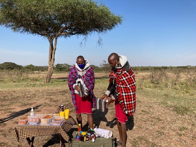 There is a sort of ‘quiet magic’ in biting into your eggs while a herd of zebras trots past just a few hundred yards away. The wildebeests are but a few paces behind. You find yourself whispering, as if any loud noise might shatter the stillness of the morning air. And a chilly winter morning it was, our jackets and skull caps firmly in place. The coffee tastes so much better when the steam rises against the backdrop of an ancient acacia tree. Time stands still, leaving you alone with the pulse of the wild. No grandeur and comfort of a dining hall at any luxe resort could be a match for pristine, open-air theatre.
