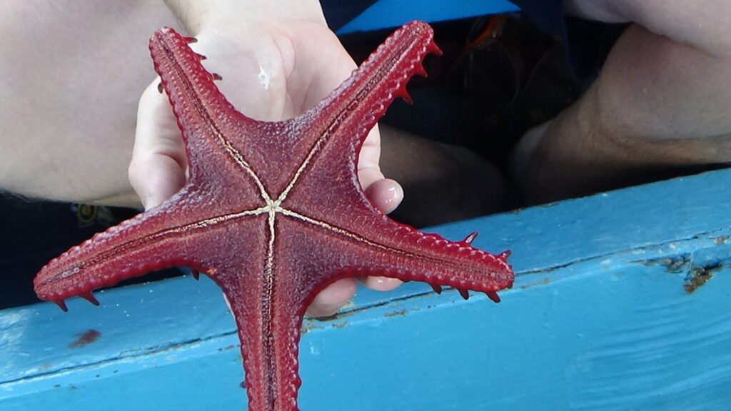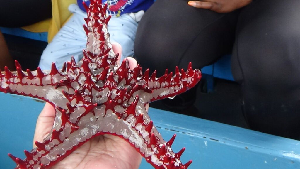 The boatmen often reach down and bring up a heavy, bright starfish or a peculiar, squishy sea cucumber for you to hold. There is something profoundly grounding about feeling the raw textures of the ocean in your own hands; it’s a moment frozen in time, something that a camera lens simply cannot capture. We are mesmerised by the zebra fish and the darting flashes of neon that are called the reef home.